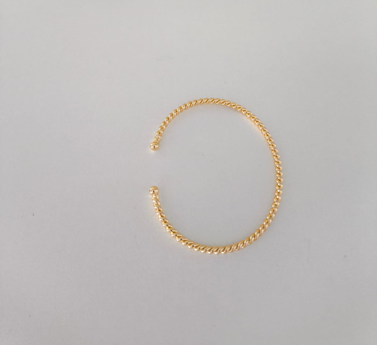 Descubra a beleza e o encanto deste bracelete fio torcido semijoia, banhada em ouro 18 k, que é a personificação do estilo e sofisticação. Seu design único aparenta um modelo torcido com duas esferas lisas nas extremidades, proporcionando um toque de elegância e modernidade à peça. Com o formato aberto embaixo, ele é facilmente ajustável para se adequar ao tamanho do pulso, tornando-o confortável de usar em qualquer ocasião. A semijoia é a escolha perfeita para aquelas que desejam adicionar um toque de brilho e glamour ao seu visual, criando uma aparência deslumbrante e cativante. Feito com materiais de alta qualidade, além da beleza da peça a Dalumix prioriza também a qualidade, dessa maneira as peças da Dalumix são recobertas por camadas de ouro 18 k, sendo uma delas paládio, que é a responsável por ser antialérgica, não possuindo níquel em sua composição. Este bracelete fica charmoso sozinho ou juntamente com outros modelos de pulseiras, na formação de um mix de muito charme e elegância. Venha adquirir essa semijoia versátil e atemporal que irá completar o seu visual com muito estilo e elegância.