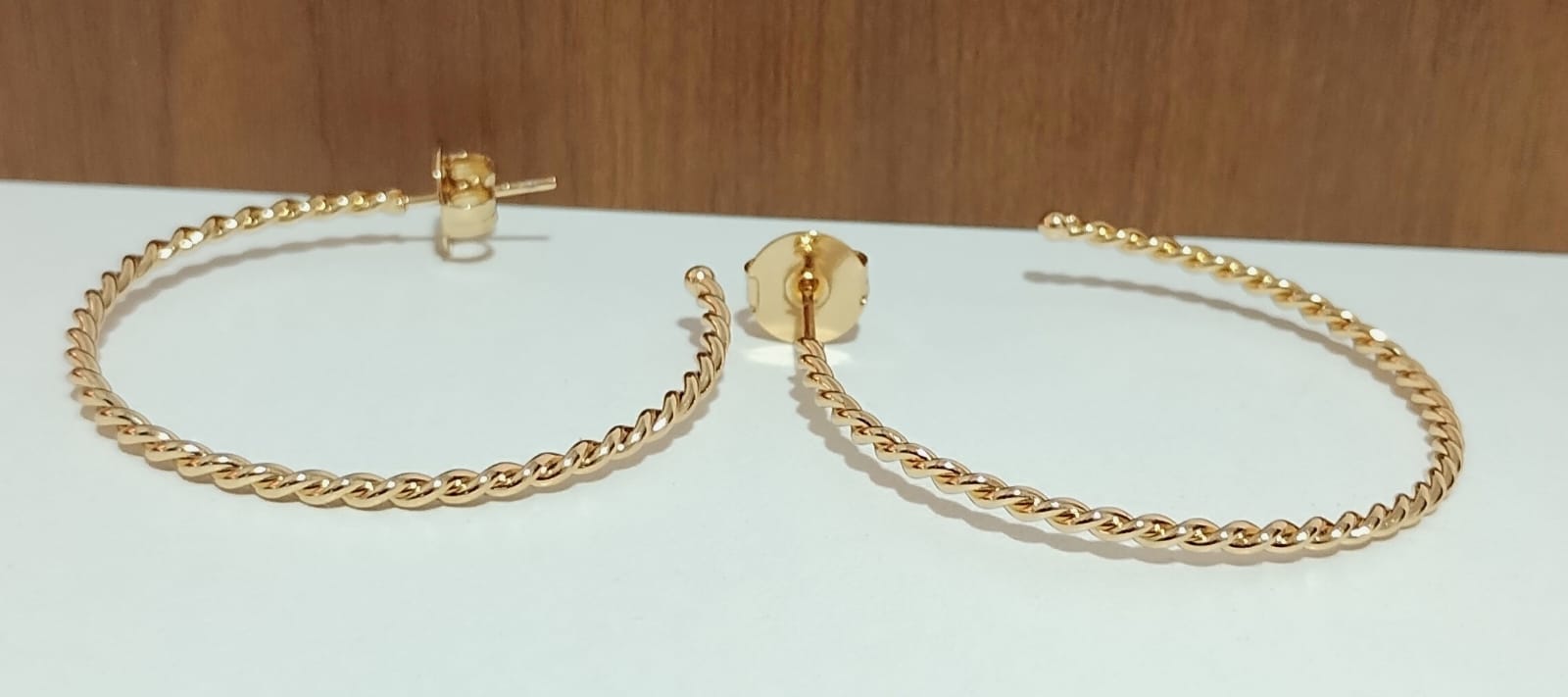 O brinco de argola fina com detalhes torcido banhado em ouro 18K, da Dalumix, é o acessório perfeito para quem ama argolas práticas e versáteis para o dia a dia e que nunca saem de moda. Ao possuir um brinco de argola, você terá certeza de sempre ter brinco perfeito para seus looks diários. Este brinco possui tarrachas seguras e práticas para por e tirar, ideal para quem procura por brincos leves ou que possam ser combinados com outros brincos em segundo e terceiro furo. Possui um design lindo e sofisticado, destaca-se pelo o brilho, complementando qualquer estilo com elegância, enquanto seu desing trabalhado exclusivo adiciona um toque moderno. O brinco argola trabalhada banhado em ouro 18 k da Dalumix é uma peça perfeita para ser usada em todas as composições. Venha montar o seu mix de brincos na Dalumix! Peças de alto padrão de qualidade, hipoalergênicas (sem níquel) garantindo maior durabilidade e brilho as suas semi joias.
