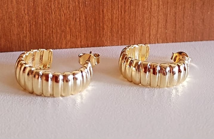 O brinco de argola semi aberta com detalhes ondulados banhado em ouro 18K, da Dalumix, é o acessório perfeito para quem ama argolas práticas e versáteis para o dia a dia e que nunca saem de moda. Ao possuir um brinco de argola, você terá certeza de sempre ter brinco perfeito para seus looks diários. Este brinco possui tarrachas seguras e práticas para por e tirar. O tamanho médio é ideal para quem procura por brincos leves ou que possam ser combinados com outros brincos em segundo e terceiro furo. Possui um design lindo e sofisticado, destaca-se pelo o brilho, complementando qualquer estilo com elegância, enquanto seu desing trabalhado exclusivo adiciona um toque moderno. O brinco argola trabalhada banhado em ouro 18 k da Dalumix é uma peça perfeita para ser usada em todas as composições. Os dois tamanhos P e M estão disponíveis na Dalumix. Venha montar o seu mix de brincos na Dalumix! Peças de alto padrão de qualidade, hipoalergênicas (sem níquel) garantindo maior durabilidade e brilho as suas semi joias.