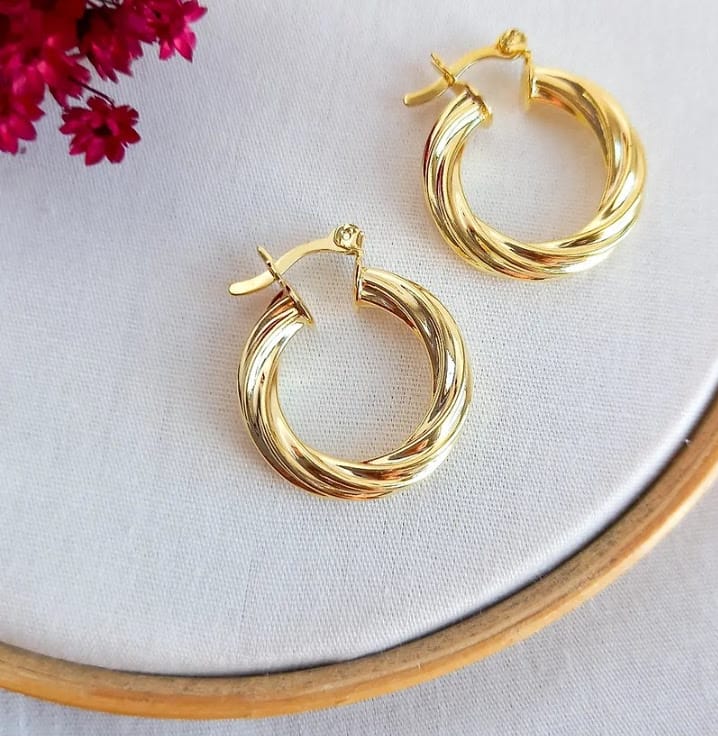 O brinco argola tubo torcido banhado em ouro 18K, da Dalumix, possui um design lindo e sofisticado, destaca-se pelo o brilho, complementando qualquer estilo com elegância, enquanto seu desing torcido exclusivo adiciona um toque moderno. O brinco argola tubo torcido banhado em ouro 18 k da Dalumix é uma peça perfeita para ser usada em todas as composições, podendo ser usado também juntamente com outros modelos de brincos menores para o segundo furo, formando um mix de puro estilo e sofisticação. Os dois tamando M e P estão disponíveis na Dalumix. Venha montar o seu mix de brincos na Dalumix! Peças de alto padrão de qualidade, hipoalergênicas (sem níquel) garantindo maior durabilidade e brilho as suas semijoias.