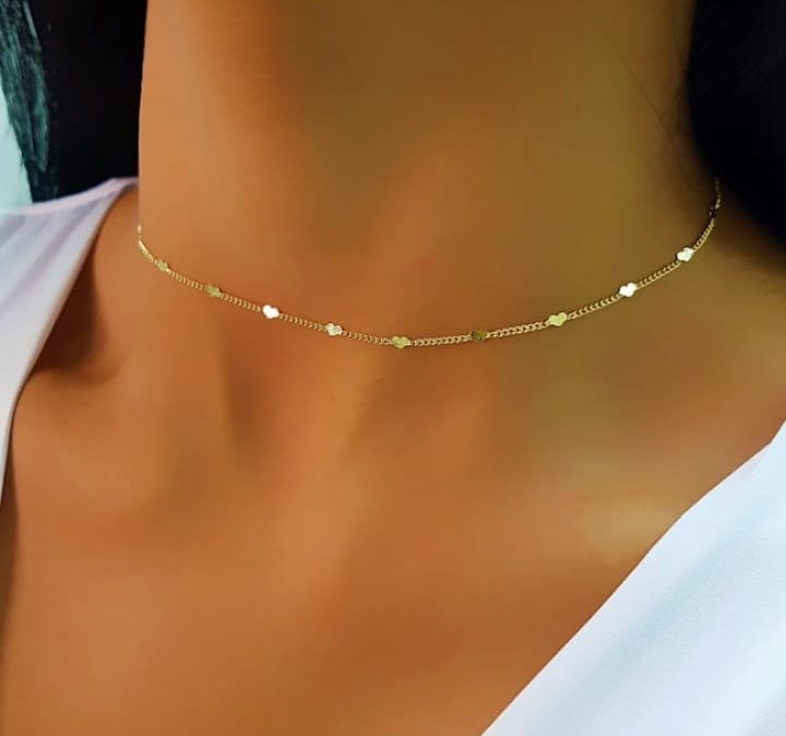 O colar choker mini corações é um acessório delicado, atemporal e versátil, pode ser usado em qualquer ocasião. Feito para fazer toda mulher brilhar como nunca, dando aquele toque especial ao seu look. Este choker é extremamente versátil e pode ser usado tanto para eventos mais formais quanto no dia a dia. Combinará perfeitamente com outros colares mais longos na formação de um mix de muito estilo e sofisticação. Possui um design simples mas estiloso lhe oferecerá uma delicadeza única para qualquer look. Peças de alto padrão de qualidade, hipoalergênica, ideal para pessoas com sensibilidade ao níquel em seu processo de fabricação.