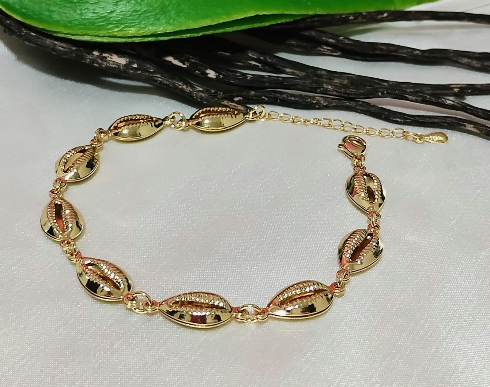 A pulseira búzios banhado em ouro 18 K da Dalumix possui um desing exclusivo com 09 búzios, proporcionando um visual elegante e sofisticado. Sendo uma peça versátil e moderna podendo ser usada em diversas ocasiões, desde eventos especiais até no dia a dia. Essa pulseira sozinha já é um acessório que fará toda a diferença no seu look, imagina combinando - a com os nossos diversos modelos de pulseiras formando um belissímo MIX de pura elegância e sofisticação! Use a criatividade, componha looks incríveis com essa linda pulseira búzios e sinta-se ainda mais bela!