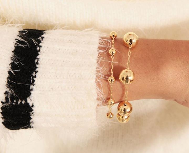 A pulseira de bolas lisas banhada em ouro 18 k, é a peça clássica que nunca sai da moda e se tornou a queridinha das mulheres elegantes. Com seu design delicado e sofisticado, essa pulseira é perfeita para qualquer ocasião, seja no trabalho ou em um evento especial. Feita com materiais de alta qualidade, ela possui um brilho único que vai te encantar. Esta em especia, possui 10 bolas separadas por três elos de correntes, o que garante a proximidade das bolas, dando um charme a peça. Além da beleza da peça a Dalumix prioriza também a qualidade, dessa maneira as peças da Dalumix são recobertas por camadas de ouro 18 k, sendo uma delas paládio, que é a responsável por ser antialérgica, não possuindo níquel em sua composição. Essa pulseira fica charmosa sozinha ou juntamente com outros modelos de pulseiras, na formação de um mix de muito charme e elegância. Venha adquirir essa semijoia versátil e atemporal que irá completar o seu visual com muito estilo e elegância.