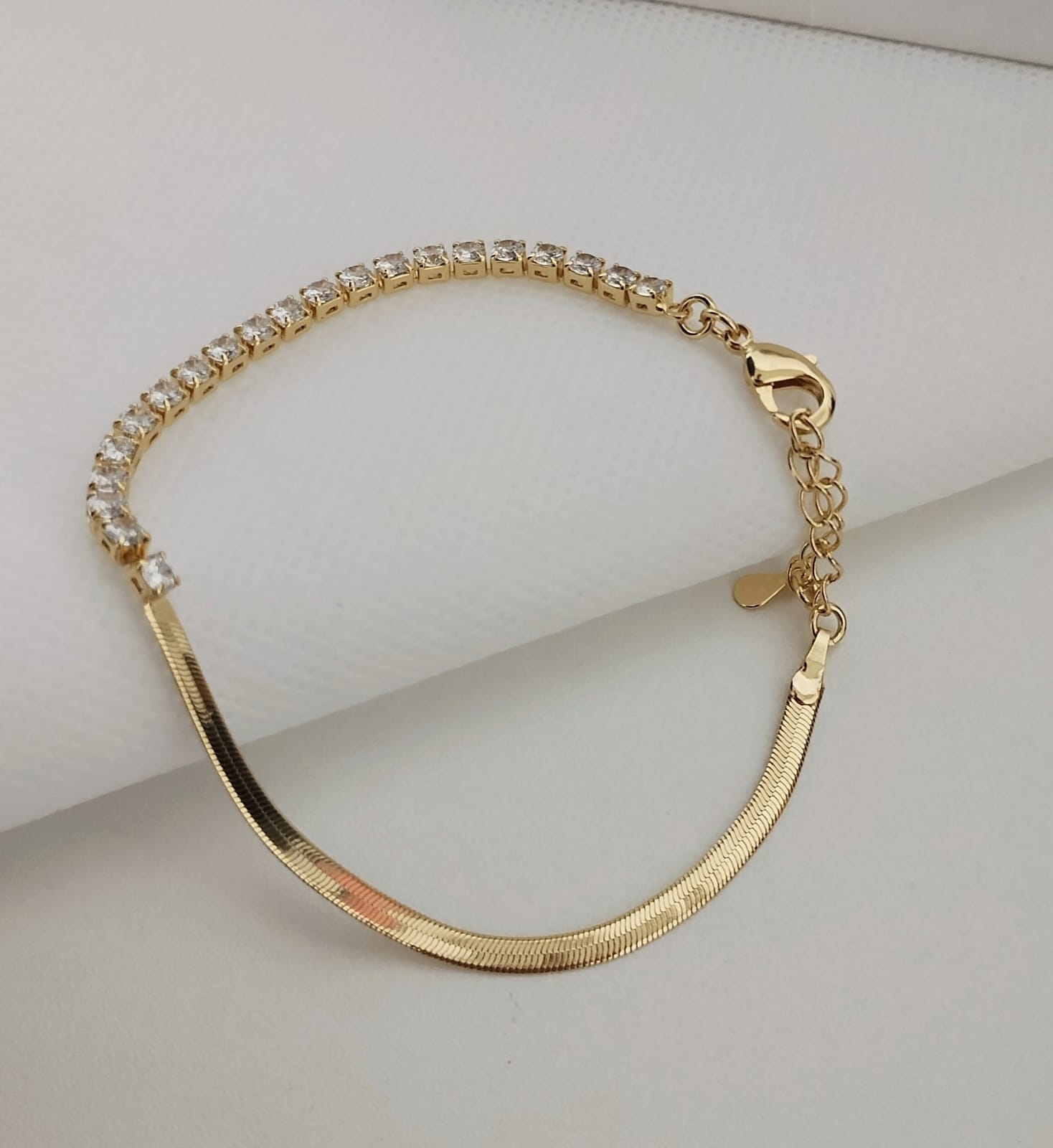 A pulseira fita com pedras de zircônia banhado em ouro 18 k, é uma peça linda, possui um design diferenciado que vai fazer você se apaixonar! Peça clássica, moderna, atemporal e sofisticada. Feita com materiais de alta qualidade, ela possui um brilho único que vai te encantar. Além da beleza da peça a Dalumix prioriza também a qualidade, dessa maneira as peças da Dalumix são recobertas por camadas de ouro 18 k, sendo uma delas paládio, que é a responsável por ser antialérgica, não possuindo níquel em sua composição. Esta pulseira fica charmosa sozinha ou juntamente com outros modelos de pulseiras, na formação de um mix de muito charme e elegância. Venha adquirir essa semijoia versátil e atemporal que irá completar o seu visual com muito estilo e elegância.